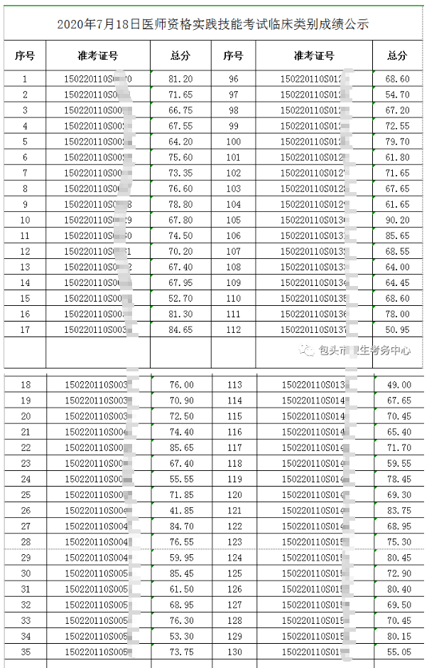 7月18日包頭市2020年臨床執(zhí)業(yè)醫(yī)師實(shí)踐技能考試成績名單公示啦