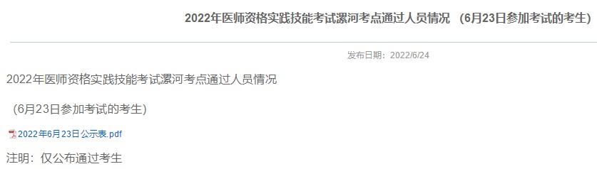 2022年醫(yī)師資格實(shí)踐技能考試漯河考點(diǎn)通過(guò)人員情況 (6月23日參加考試的考生):