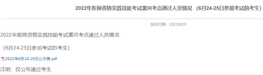 2022年醫(yī)師資格實(shí)踐技能考試漯河考點(diǎn)通過人員情況 (6月24-25日參加考試的考生):