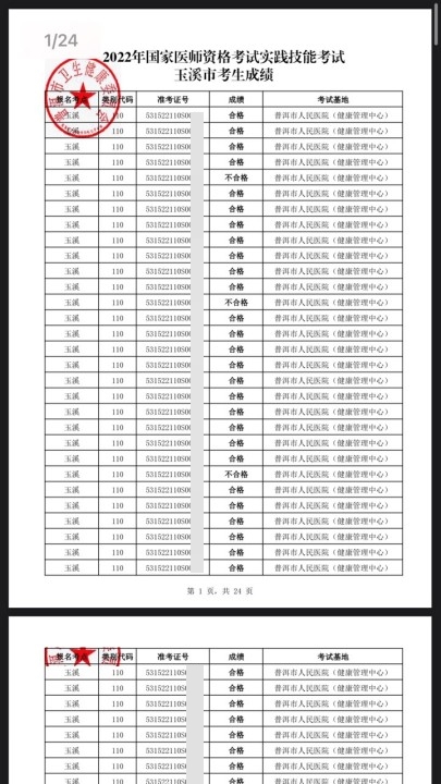 2022年國家醫(yī)師資格考試實踐技能考試玉溪市考生成績公示