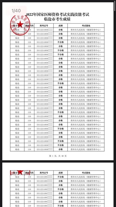 2022年國(guó)家醫(yī)師資格考試實(shí)踐技能考試臨滄市考生成績(jī)公示