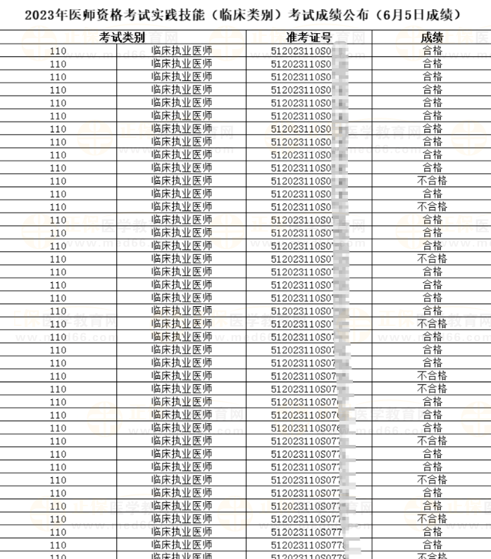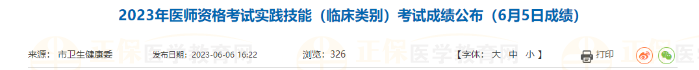 原文通知標題:2023年醫(yī)師資格考試實踐技能(臨床類別)考試成績公布(6月5日成績)
