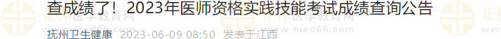 查成績了!江西撫州考點2023年醫(yī)師資格實踐技能考試成績查詢公告