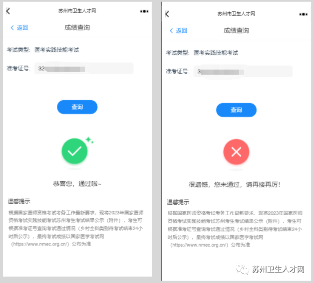 蘇州考點2023年臨床執(zhí)業(yè)醫(yī)師資格實踐技能考試成績查詢?nèi)肟陂_通!