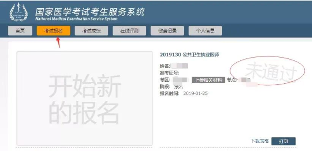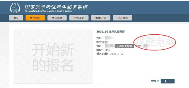 第三步:在考生個人報名界面中,點“考試報名”即可查看技能考試結果:“未通過”、“技能通過”、“技能免考”。