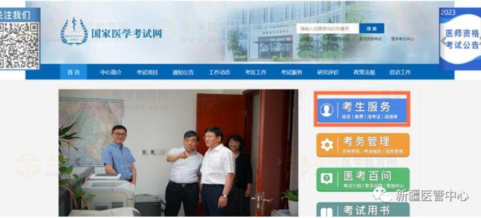 1.登錄國家醫(yī)學考試網(wǎng)http://www.nmec.org.cn/后,點擊網(wǎng)頁右側(cè)“考生服務”欄目: