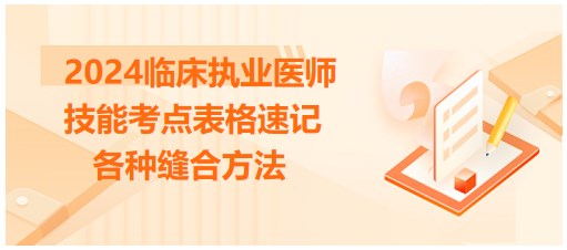 2024臨床執(zhí)業(yè)醫(yī)師考生請注意!實踐技能考試備考進入倒計時,一定堅持每日備考復習加深考點記憶!正保醫(yī)學教育網幫考生整理了2024臨床執(zhí)業(yè)醫(yī)師技能考點總結表-各種縫合方法,趕快來背!