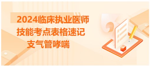 2024臨床執(zhí)業(yè)醫(yī)師考生請注意!實踐技能考試備考進入倒計時,一定堅持每日備考復(fù)習(xí)加深考點記憶!正保醫(yī)學(xué)教育網(wǎng)幫考生整理了2024臨床執(zhí)業(yè)醫(yī)師技能考點總結(jié)表-支氣管哮喘,趕快來背!