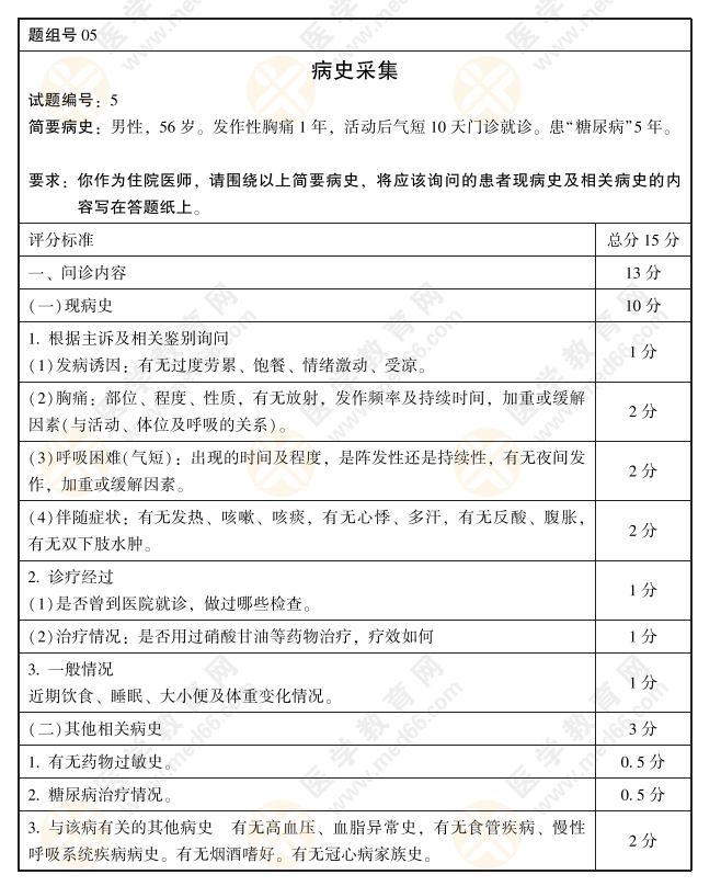 2021年實踐技能模擬考官評分手冊——第一站病史采集病例分析05題