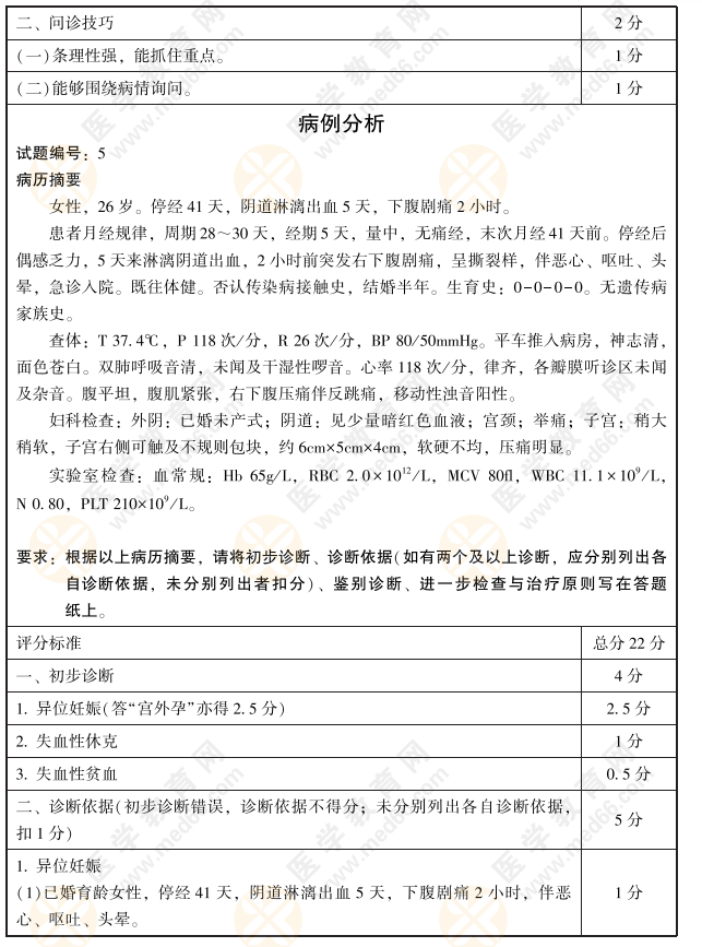 關(guān)于“2021年實踐技能模擬考官評分手冊——第一站病史采集病例分析05題”的內(nèi)容,相信很多考生都很關(guān)心,醫(yī)學(xué)教育網(wǎng)為了幫助廣大考生復(fù)習(xí)備考,特整理了具體的內(nèi)容,趕緊收藏吧!
