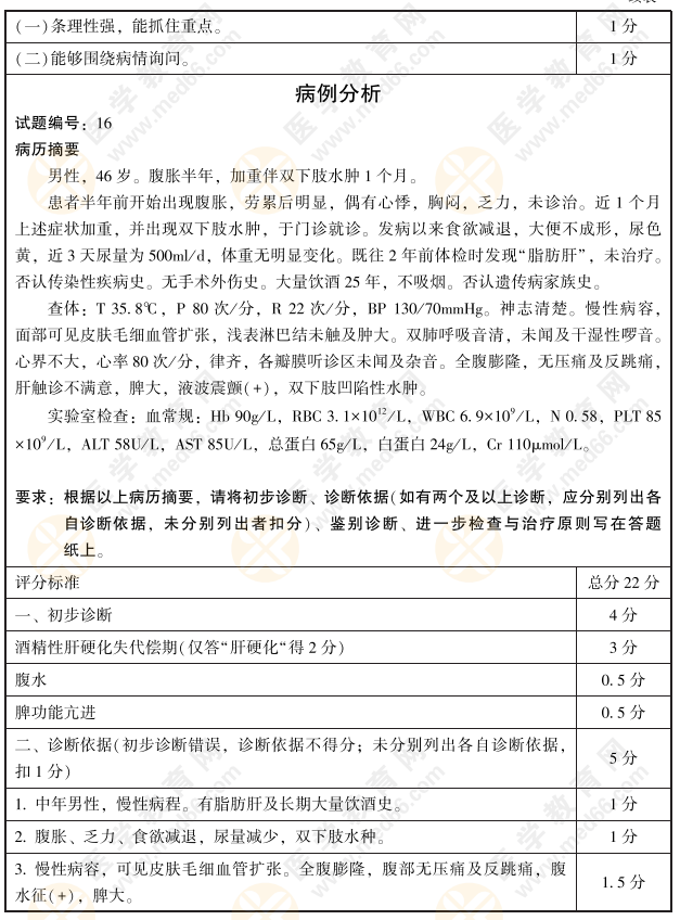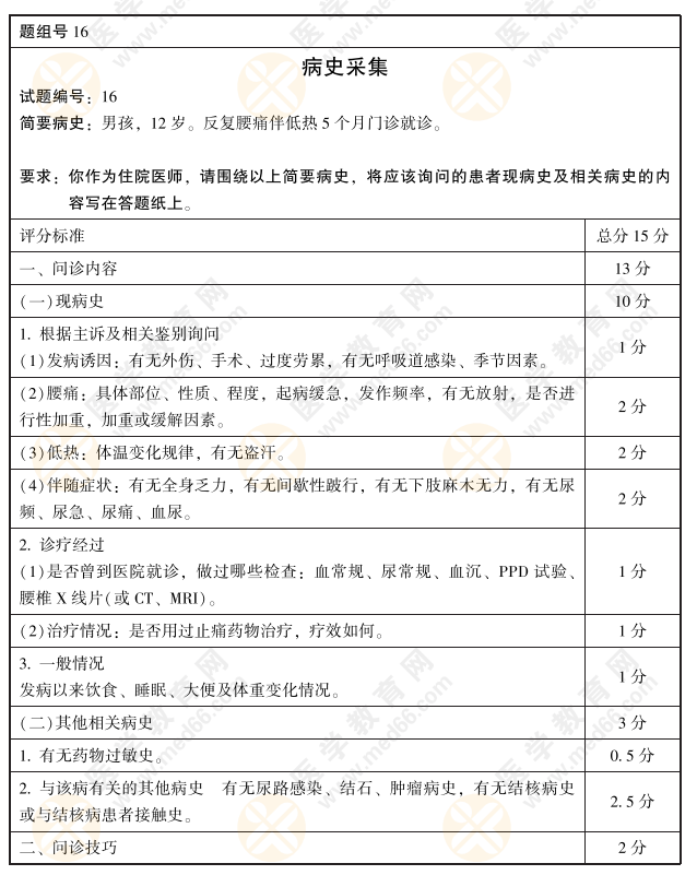 2021年臨床執(zhí)業(yè)醫(yī)師實踐技能考官手冊——病史采集+病例分析16題