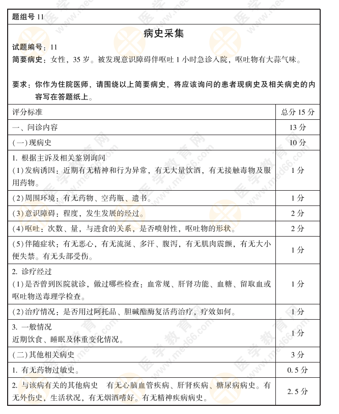 2021年臨床執(zhí)業(yè)醫(yī)師實踐技能第一站考官評分手冊——題組號11
