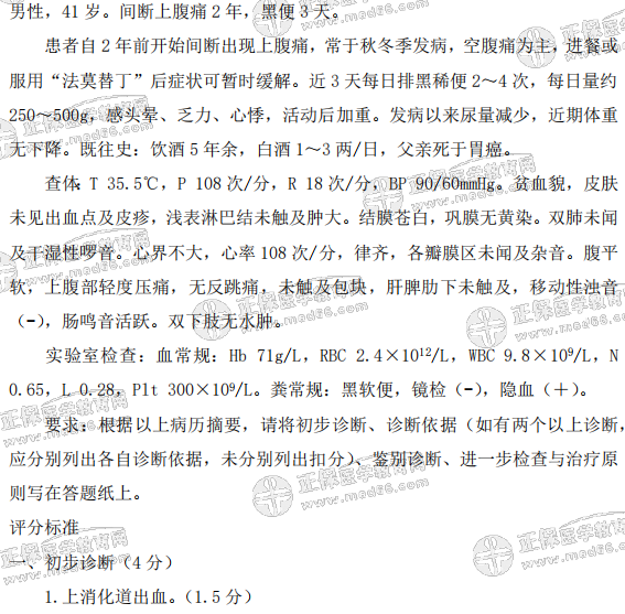 - · 臨床醫(yī)師實踐技能第一站病例分析歷年考點題:上消化道出血