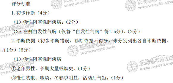 - · 慢性阻塞性肺疾病病例分析評分標準——臨床醫(yī)師技能考點例題