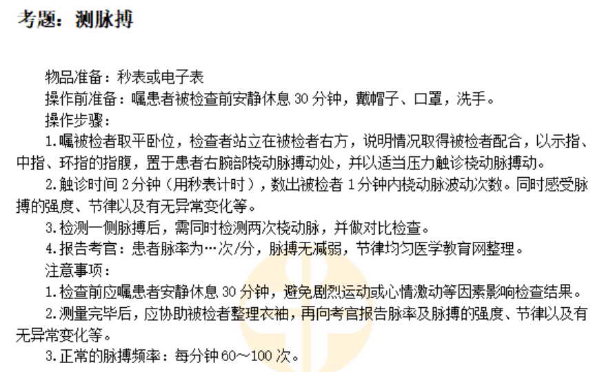 測(cè)脈搏的操作步驟及注意事項(xiàng)——臨床醫(yī)師技能體格檢查歷年考點(diǎn)