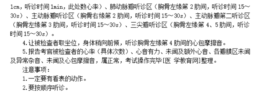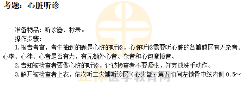 臨床執(zhí)業(yè)醫(yī)師體格檢查歷年考點:心臟聽診操作步驟及注意事項