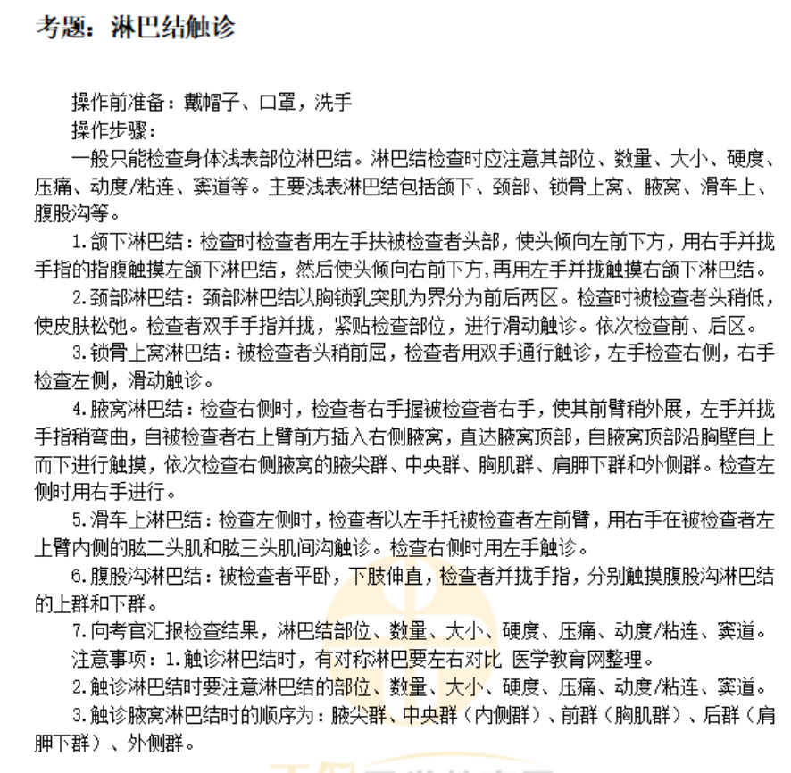 淋巴結(jié)觸診的檢查步驟及注意事項(xiàng)——臨床醫(yī)師體格檢查歷年考點(diǎn)