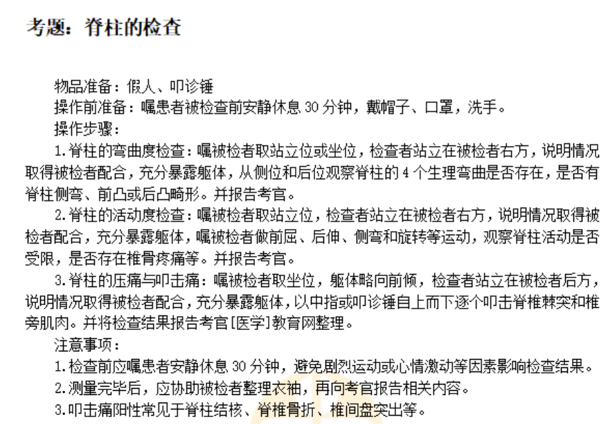 脊柱的檢查操作步驟及注意事項——臨床醫(yī)師體格檢查歷年考點