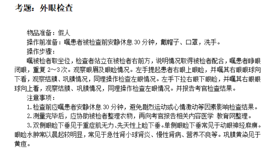 外眼檢查的步驟及注意事項——臨床醫(yī)師體格檢查歷年考點
