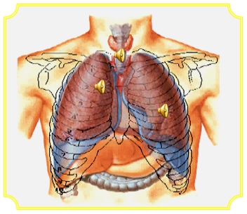 胸骨兩旁第1、2肋間,前后肺尖和后胸第3、4胸椎兩旁。