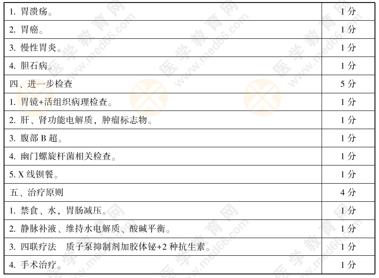 十二指腸潰瘍病例分析評分標(biāo)準(zhǔn)——臨床醫(yī)師實(shí)踐技能考點(diǎn)例題