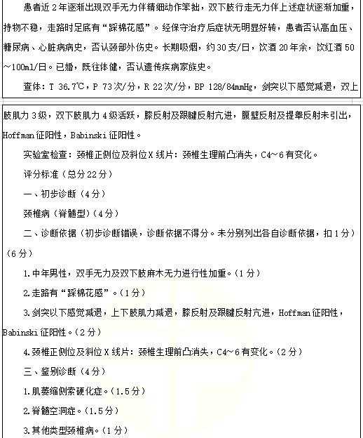 神經(jīng)根型頸椎病考點例題:男性,52歲。雙手無力及雙下肢麻木無力2年。加重1年。2022年臨床醫(yī)師實踐技能考試正在進行中,醫(yī)學教育網(wǎng)編輯預祝各位考生順利參考,取得好成績!