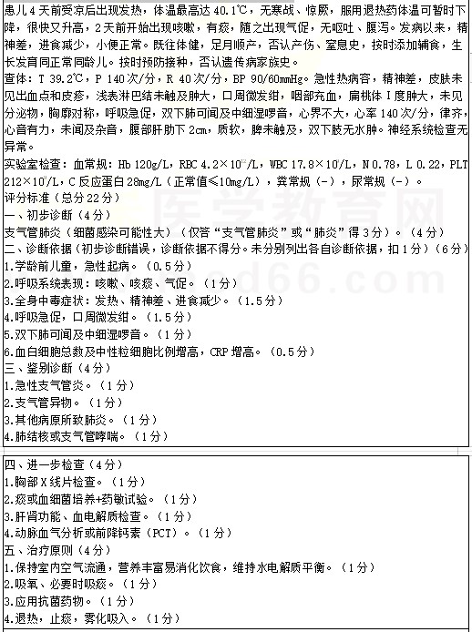臨床醫(yī)師肺炎考點例題:女孩,3歲半。發(fā)熱4天,咳嗽、氣促2天。