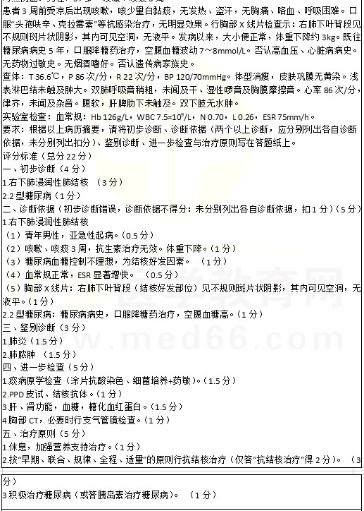 右側(cè)肺結(jié)核/右側(cè)胸腔積液考點例題:男,37歲??人?、咳痰3周。