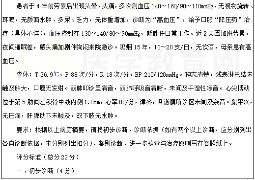 高血壓3級/室早考點例題:男性,59歲。反復頭暈、頭痛4年,加重2天。2022年臨床醫(yī)師實踐技能考試正在進行中,醫(yī)學教育網(wǎng)編輯預祝各位考生順利參考,取得好成績!