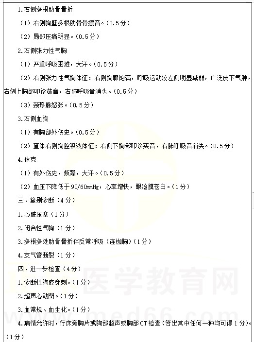 考點例題:女性,76歲。胸部外傷后疼痛、氣促、心悸1小時。