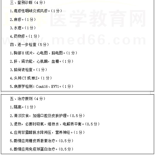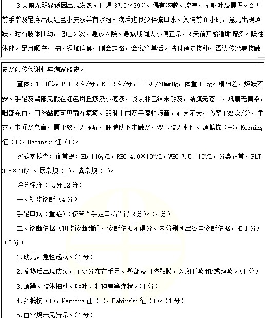 手足口病考點(diǎn)例題:女孩,1歲1個(gè)月。發(fā)熱3天,皮疹2天。