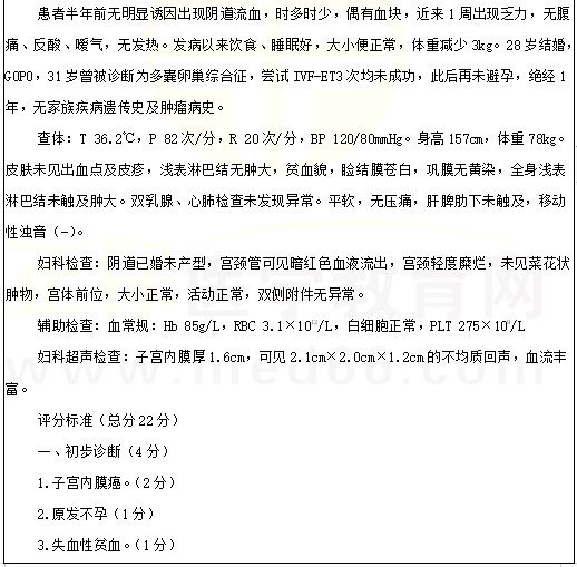 子宮內(nèi)膜癌、2型糖尿病考點(diǎn)例題:女性,57歲。絕經(jīng)1年,陰道不規(guī)則出血伴消瘦乏力半年。2022年臨床醫(yī)師實(shí)踐技能考試正在進(jìn)行中,醫(yī)學(xué)教育網(wǎng)編輯預(yù)祝各位考生順利參考,取得好成績(jī)!