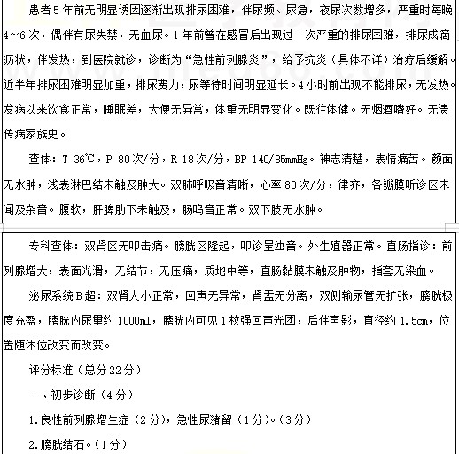 膀胱結(jié)石和前列腺肥大考點例題:男性,75歲。進(jìn)行性排尿困難5年,不能排尿4小時。2022年臨床醫(yī)師實踐技能考試正在進(jìn)行中,醫(yī)學(xué)教育網(wǎng)編輯預(yù)祝各位考生順利參考,取得好成績!