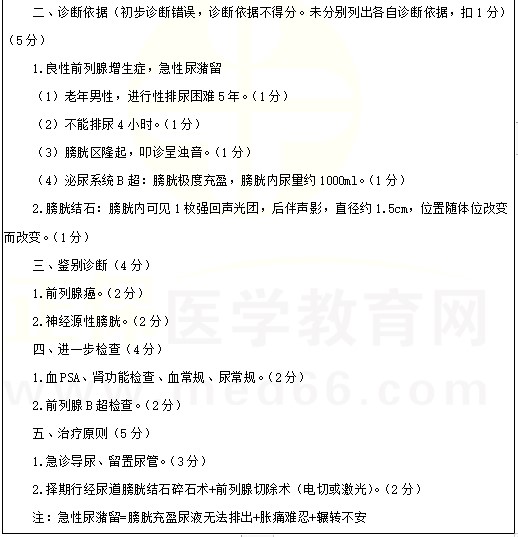 考點例題:男性,75歲。進(jìn)行性排尿困難5年,不能排尿4小時。