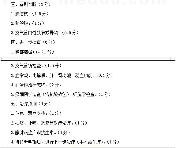 考點例題:男性,59歲。間斷咳嗽、咳痰伴發(fā)熱半年就診,加重1周。