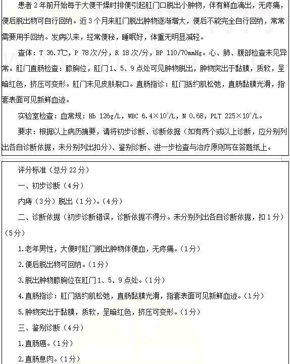 考點例題:男性,50歲。大便時肛門脫出腫物2年。