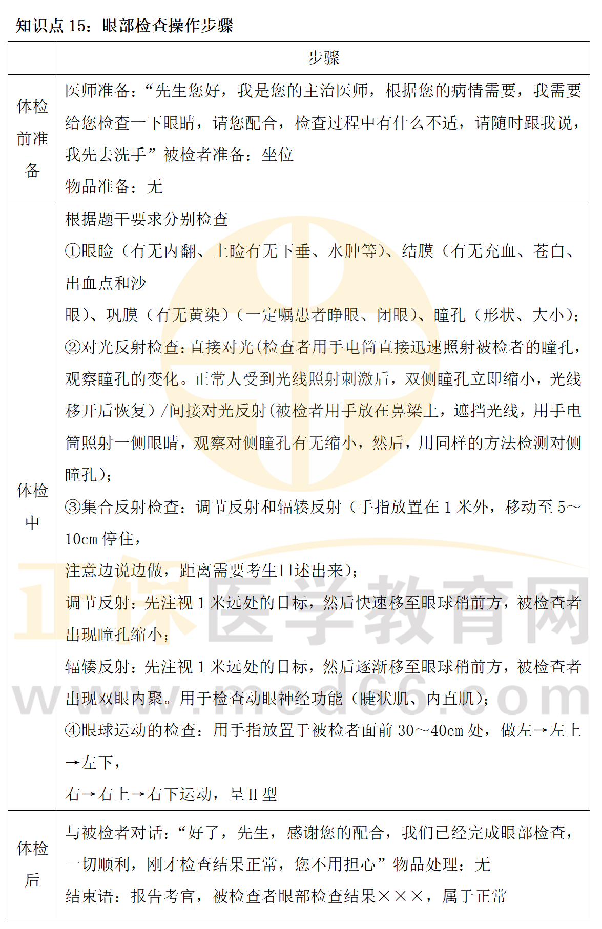 2023臨床執(zhí)業(yè)醫(yī)師實(shí)踐技能考點(diǎn)<眼部檢查操作步驟>總結(jié)表