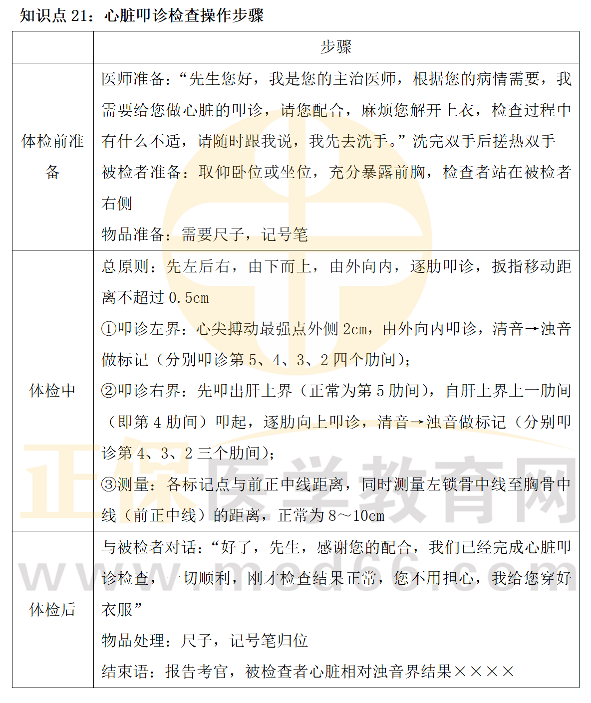 2023臨床執(zhí)業(yè)醫(yī)師實踐技能考點<心臟叩診檢查操作步驟>總結(jié)表