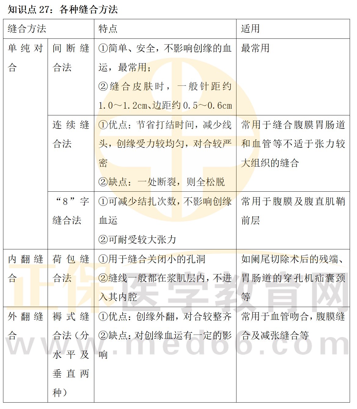 一表搞定臨床醫(yī)師技能高頻知識點各種縫合方法