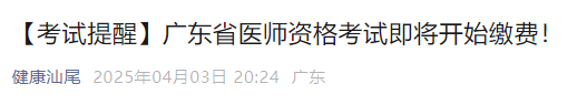 【考試提醒】廣東省醫(yī)師資格考試即將開始繳費!