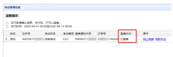 八、繳費(fèi)成功后,如繳費(fèi)狀態(tài)還是顯示“未繳費(fèi)”或“待繳費(fèi)”,點(diǎn)擊“刷新?tīng)顟B(tài)”進(jìn)行獲取最新的繳費(fèi)結(jié)果并更新繳費(fèi)狀態(tài)。