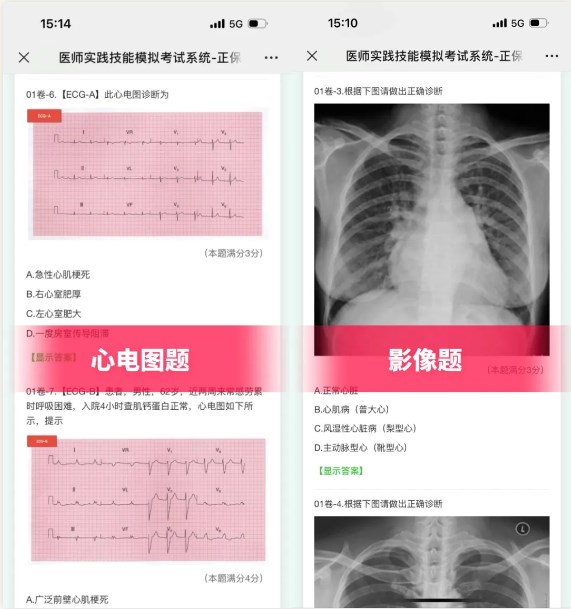 本系統(tǒng)提供的??荚嚲矶嘀?套,少則3套。題目涉及音頻、視頻、圖片(心電圖、影像題)、文字等多方式。嚴格按照考試題型及出題方式、題型題量設(shè)置,全真模擬真實考試場景,幫助大家熟悉考試題型及出題方式,分值占比。