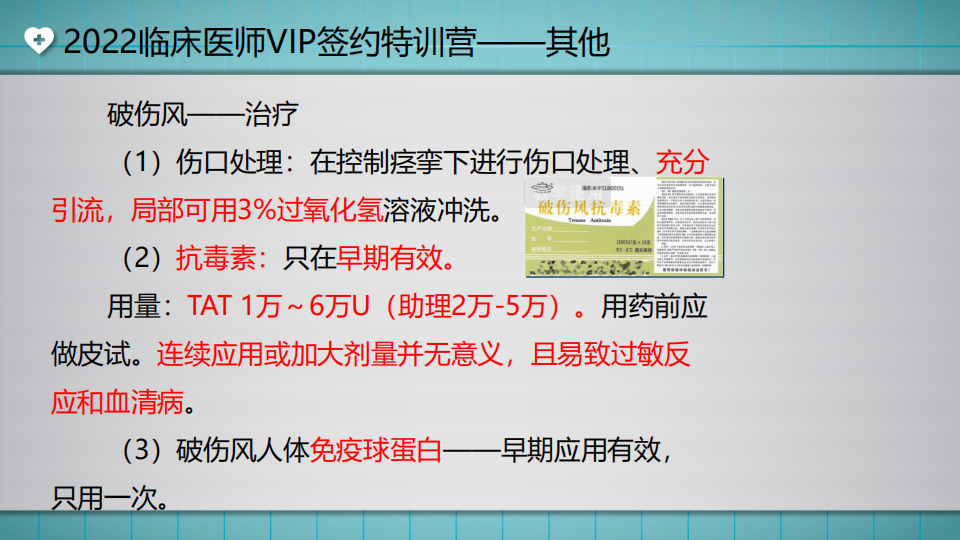 破傷風的治療考點小結——湯以恒臨床醫(yī)師VIP公開課講義如下,湯以恒老師4月25日開展了VIP強化特訓公開課,參與直播的同學熱情高漲,都是干貨,全是精髓! 錯過直播的同學可以看直播回放>>,現在將精彩講義內容摘取如下,沒有參加直播的同學,也可以一睹為快啦!