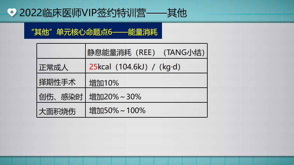 臨床醫(yī)師“其他”單元核心命題點——能量消耗(湯以恒總結(jié))