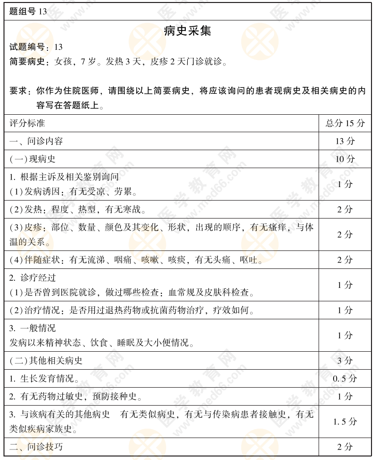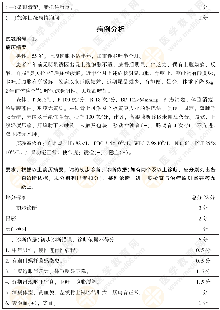 2022年臨床醫(yī)師病史采集+病例分析考前模擬卷第13套(含評分標準)