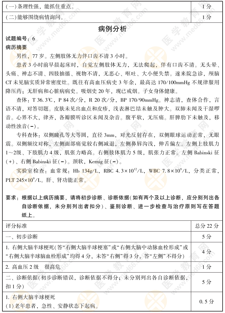2022年臨床醫(yī)師病史采集+病例分析考前模擬卷第6套(含評分標準)如下,2022年臨床執(zhí)業(yè)醫(yī)師實踐技能考試在即,醫(yī)學教育網整理了實踐技能考前指導手冊(查看活動詳情>>),包含技能各站精選模擬試題,查看2022年臨床執(zhí)業(yè)醫(yī)師技能集訓營,暢享考前直播課>>