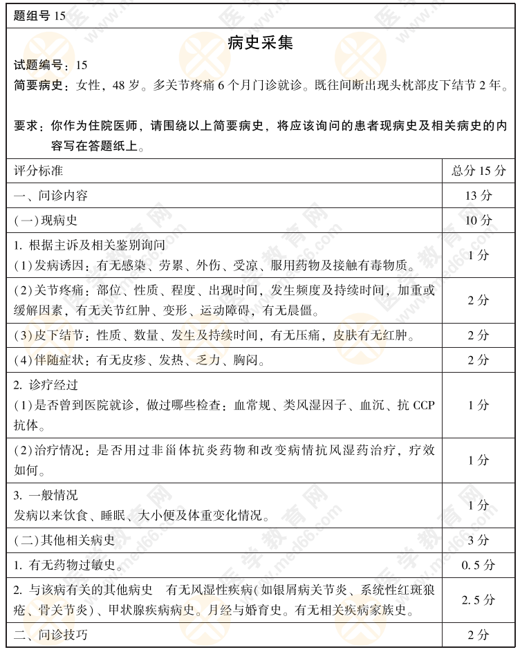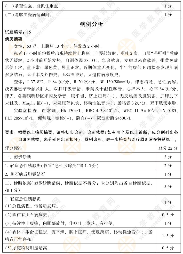 2022年臨床醫(yī)師病史采集+病例分析考前模擬卷第15套(含評分標(biāo)準(zhǔn))