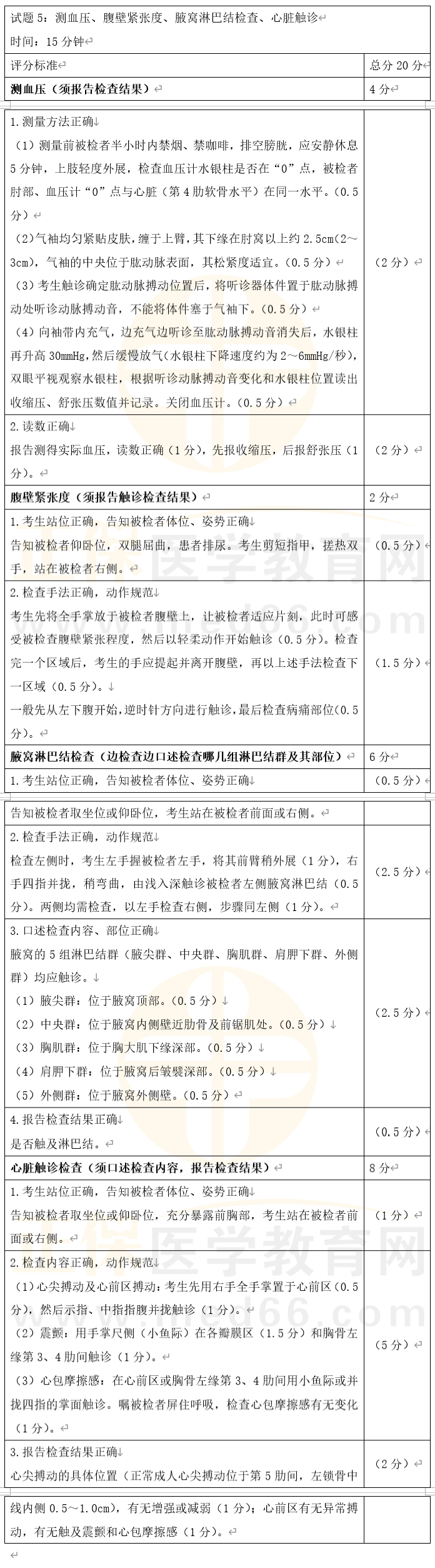 實(shí)踐技能第二站體格檢查考試時(shí)間為15分鐘,分值占比為20分。