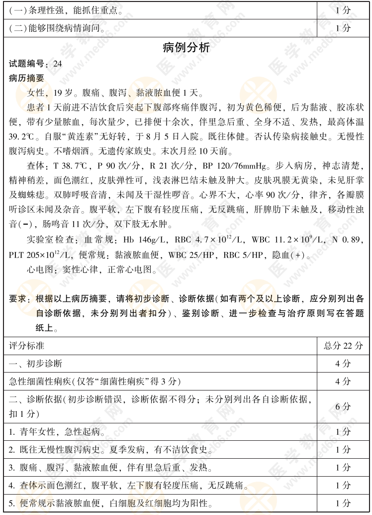 ?2022年臨床醫(yī)師病史采集+病例分析考前模擬卷第24套(含評(píng)分標(biāo)準(zhǔn))