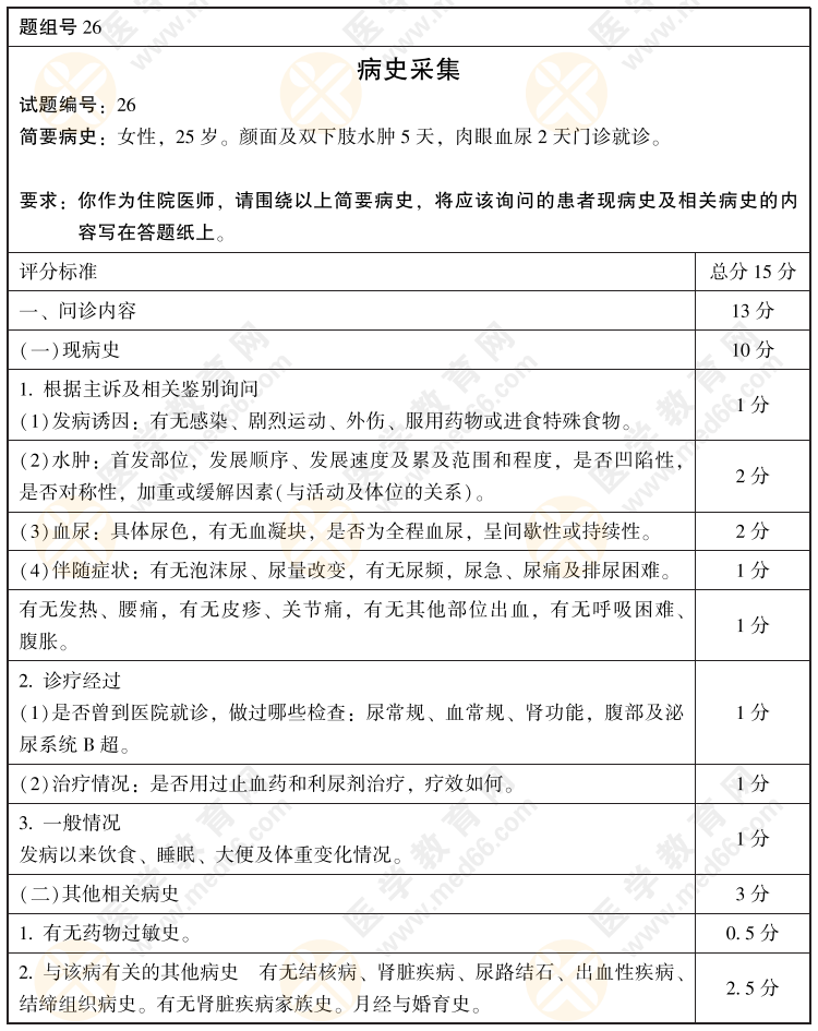 2022年臨床執(zhí)業(yè)醫(yī)師實踐技能病史采集+病例分析考前26套模擬卷(含評分標準)